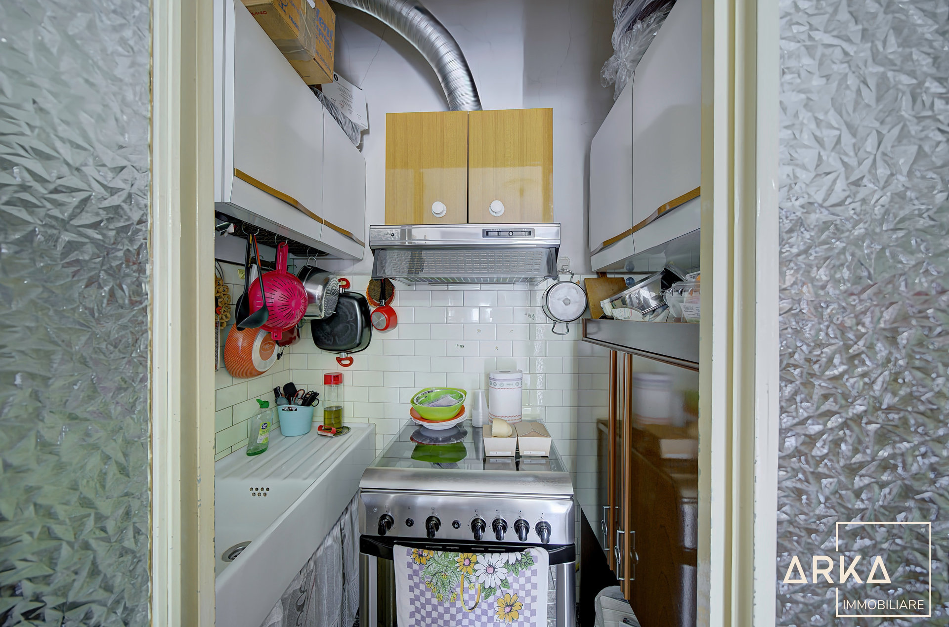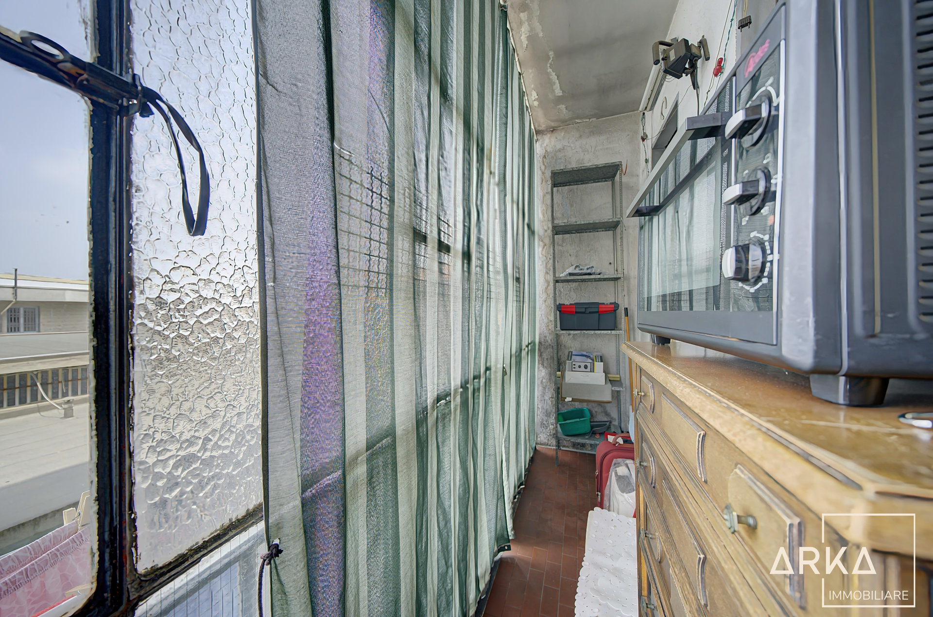 L’appartamento, dotato di porta blindata, è composto da ingresso, soggiorno con cucinino, camera da letto, bagno finestrato con doccia, ripostiglio, balcone e veranda.